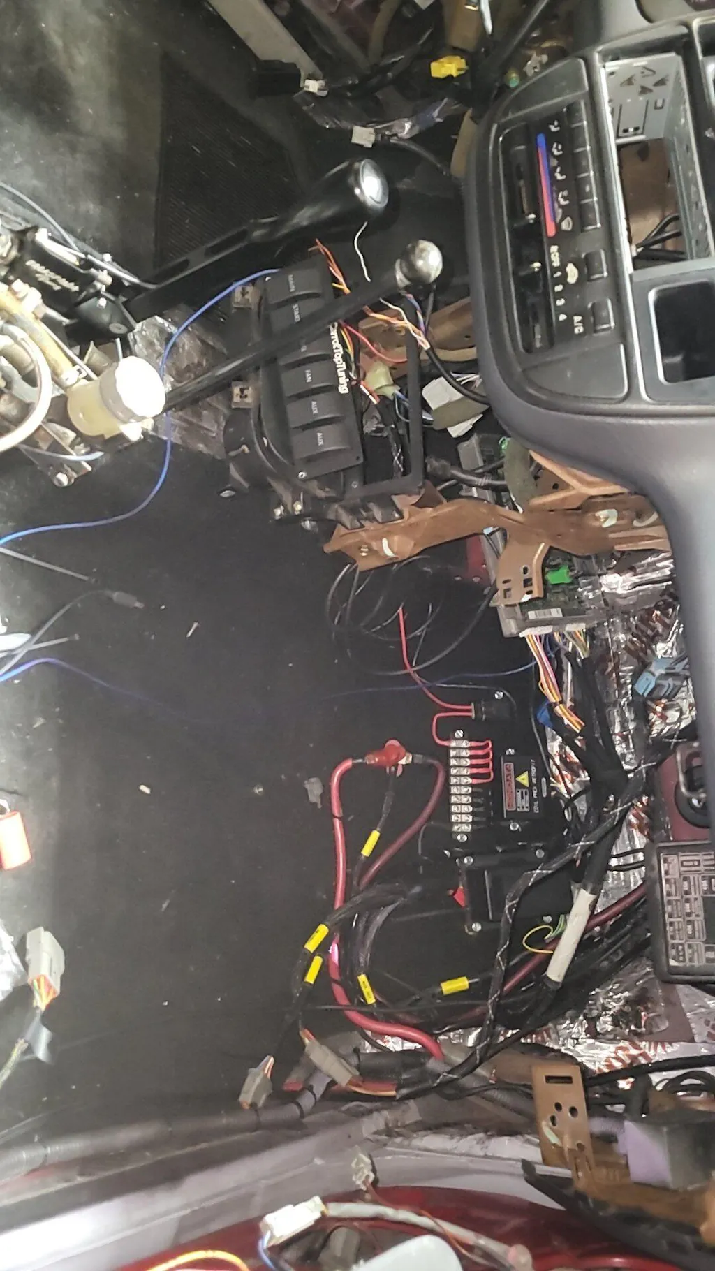 I'm running a hondata s300 with digadizzy. This is a (how to) run this setup and have all your turnsignals/headlights/power windows) setup the harness the way carotttop intends it. Wire your fuel pump to fuel, main switch, ect. Leave your chassis harness in your car. Sence this is technically a stand alone harness. You can also run your oem fuse box as a separate harness. Plug your oem fuse box into your chassis harness, and run a power wire from your battery to the oem fuse box. You will now have headlights. And everything els, without having to run relays ect. You Will have to ask for the dash pinouts. Once that's done, you can find pinouts online for your ek/eg dash setup. Simply cut each wire as you go along the pinout. Heat shrink your dash plug wires into gauge cluster plugs. Once finished, you will have a working ek gauge cluster and a working chassis harness setup separately from their harness, (chassis harness powers on though the key just like oem) ((engine harness powers up though switch panel)) 2 separate harnesses working together. Sounds like more work than it is, took me about 4 hours to hook everything up properly. This setup allows you to utilize the switch panel, and fuse box tuck for the engin harness, while running everything needed to drive your car leagilly on the street. Willing to make a how to video if 2 people reply to this.