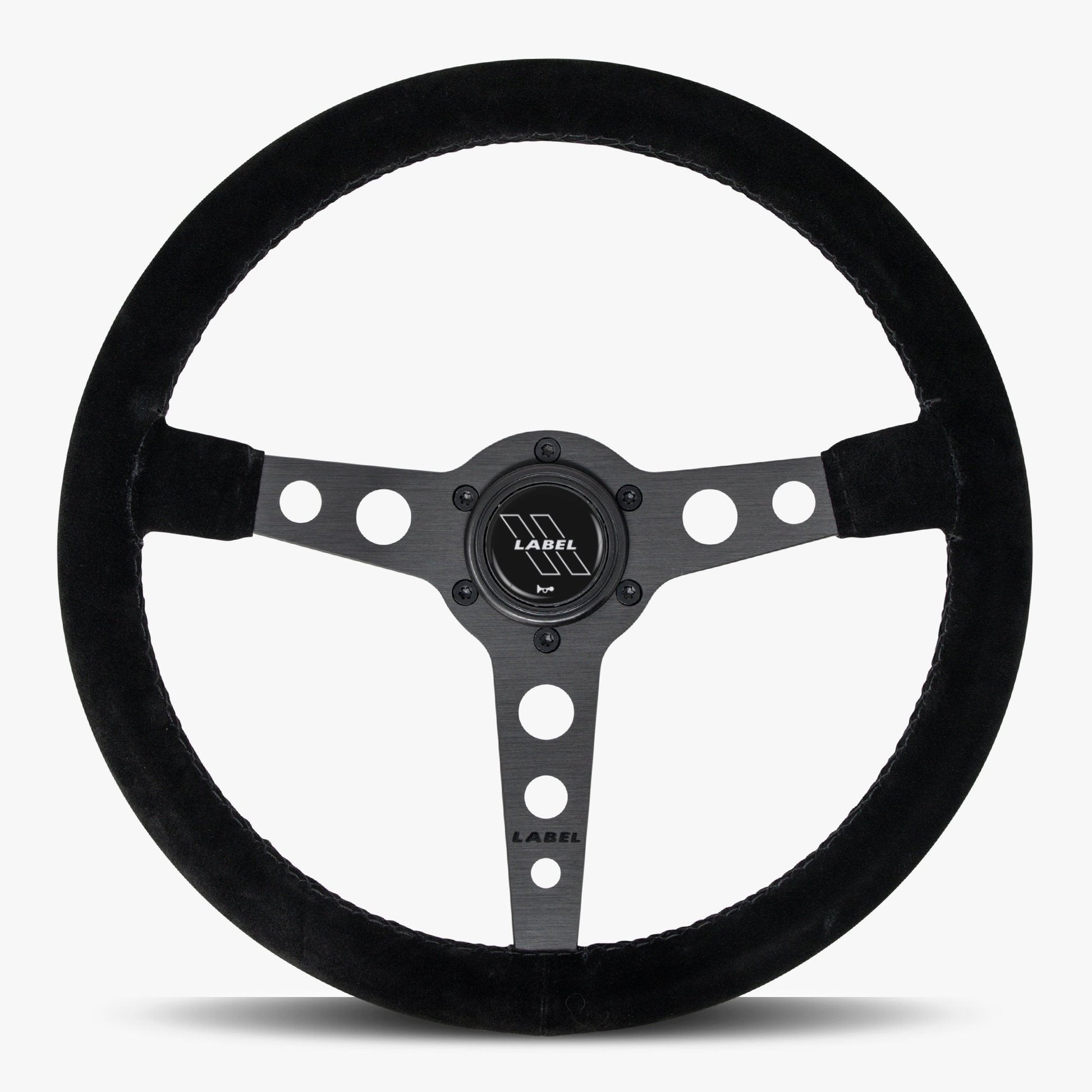 The Daytona Black Alcantara Suede Steering Wheel with Black Spoke and Black Stitch