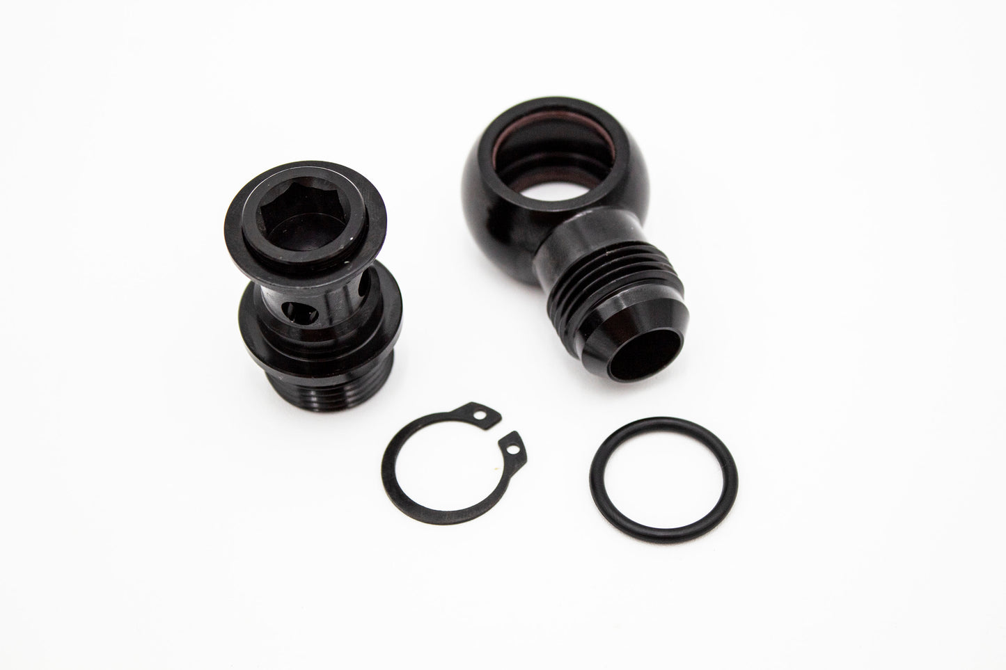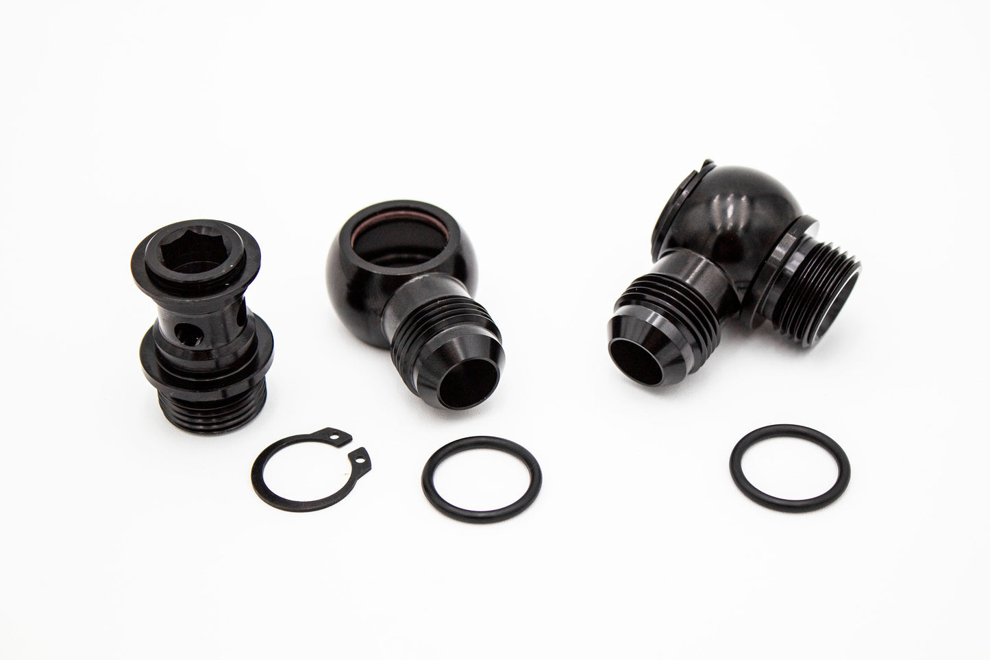These fittings come in numerous configurations, making them ideal for fuel systems, oil systems, vacuum lines, and crankcase catch can setups. Equipped with dual Viton O-rings, they ensure a reliable seal and represent the next level of 90-degree banjo fitting engineering.