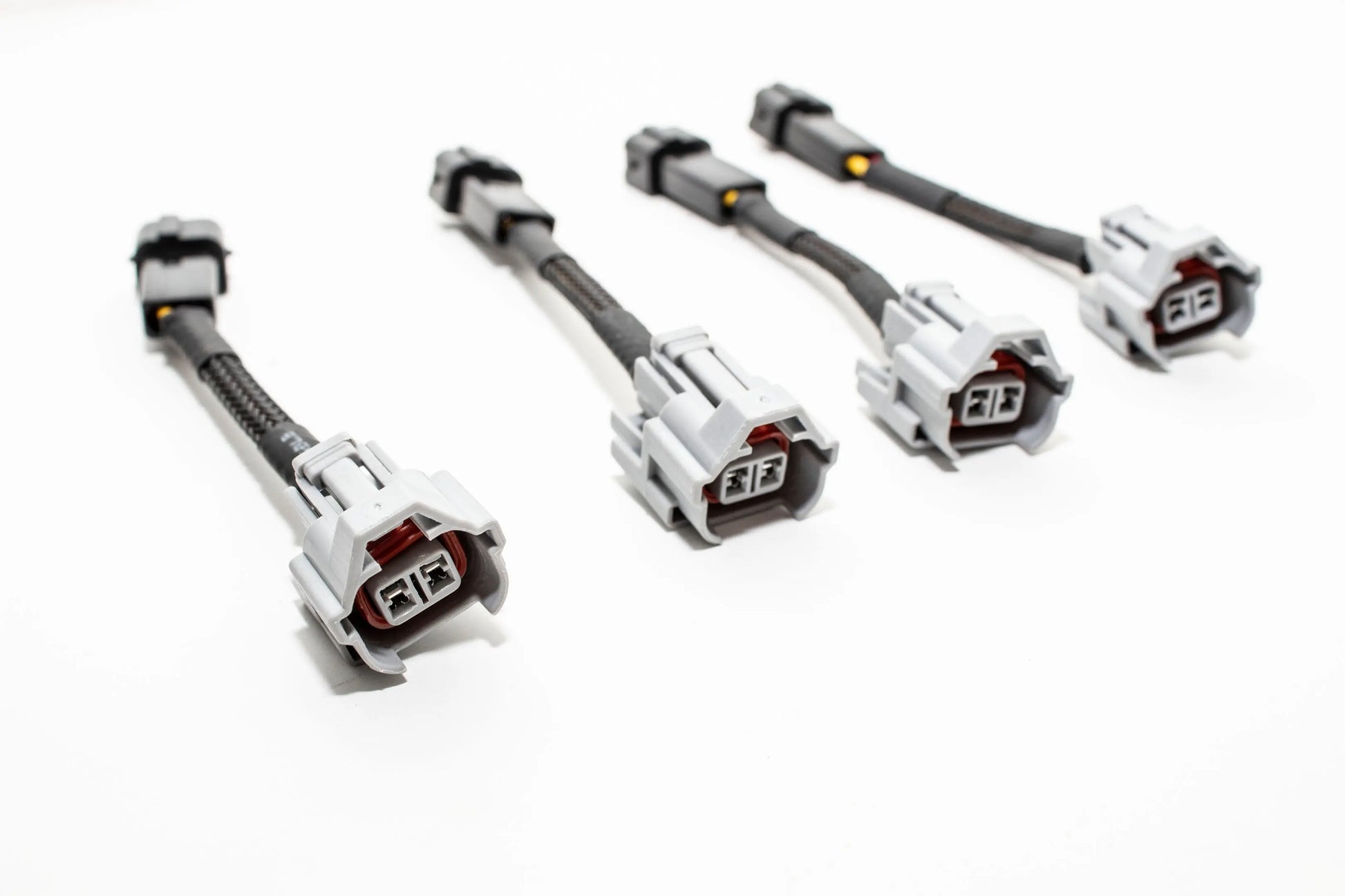 These adapters will work with any engine harness that have Honda OBD2 style injector connectors. Designed for plug n play install, without hassle. Made with high quality OEM style connectors. Does not require you to cut and splice pigtails for a cleaner look!
