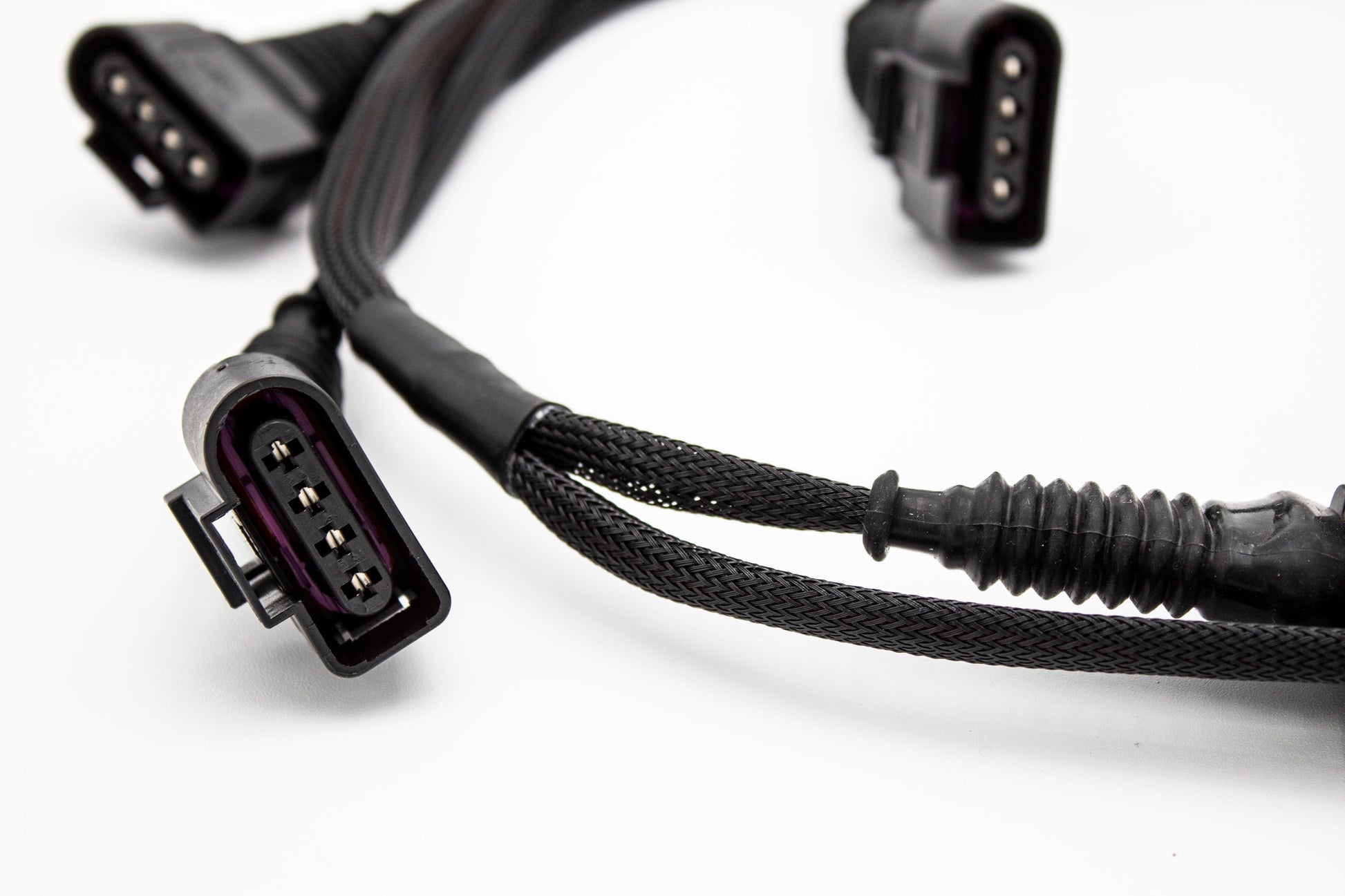 Clean up your engine bay with our latest innovation: the upgraded coil pack harness. Crafted with precision, each harness boasts brand new factory spec connectors, ensuring seamless compatibility. Wrapped in durable nylon braiding and fortified with TXL high-temp resistant automotive wiring, this harness is engineered to withstand the toughest conditions, guaranteeing longevity and reliability.
