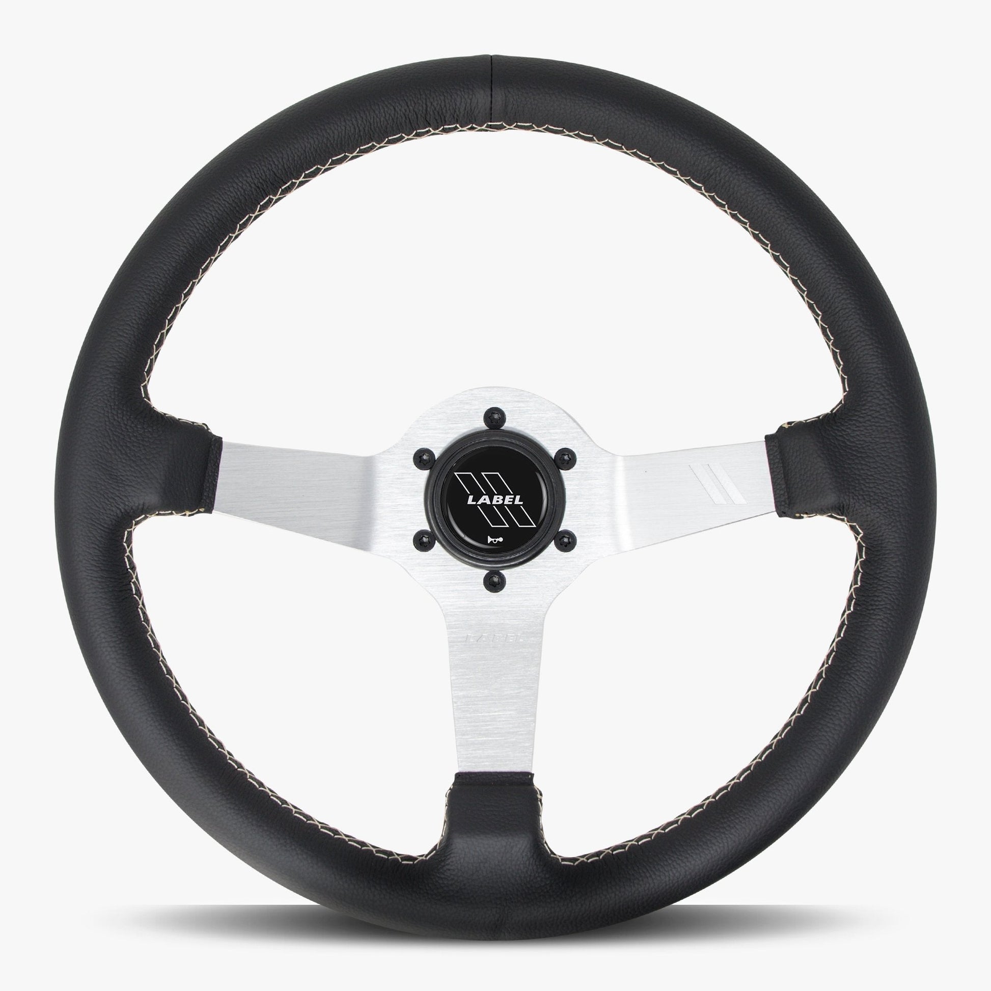 The Classic Black Leather Steering Wheel with Silver Spoke and White Stitch