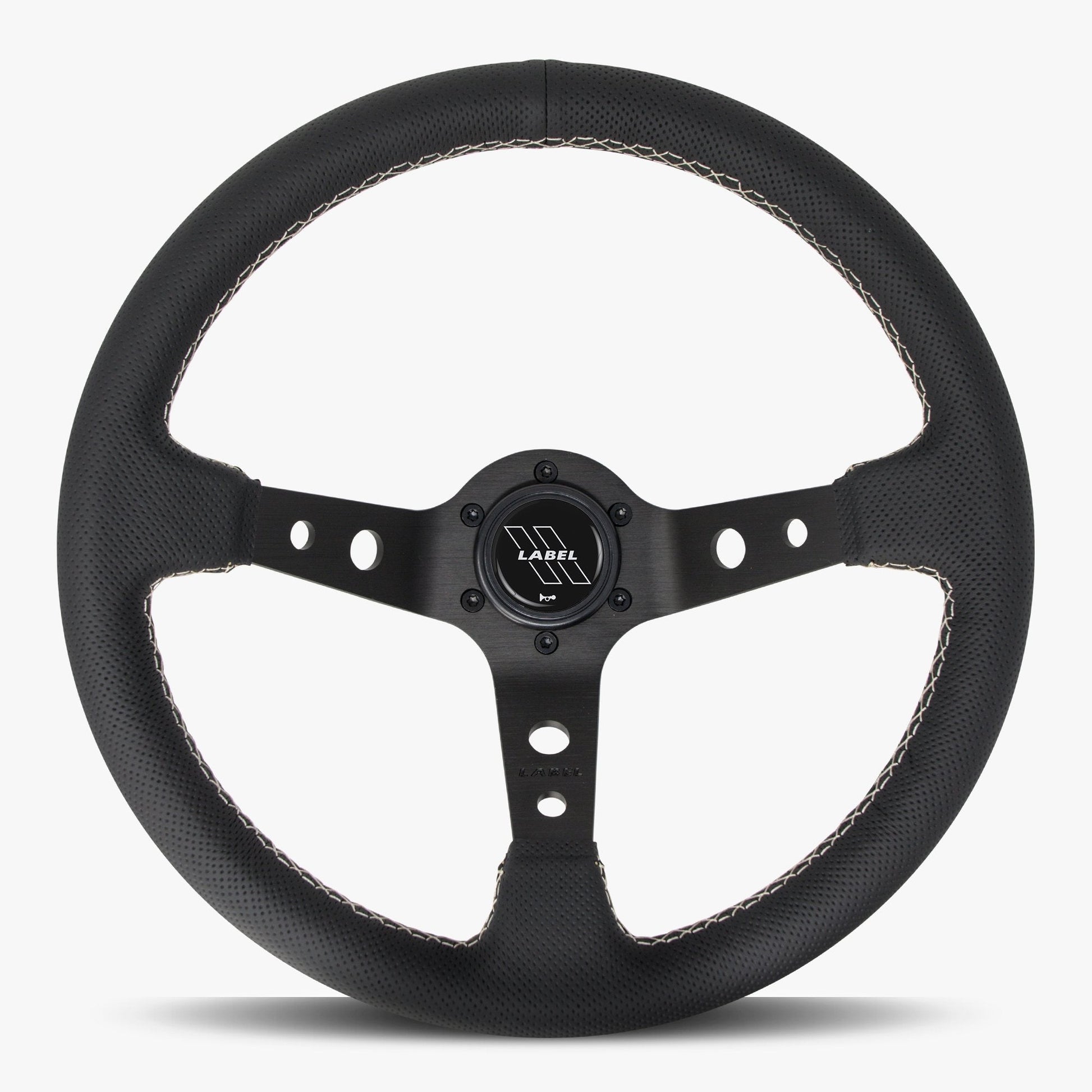The Daytona | Black Perforated Leather | Black Spoke | White Stitch