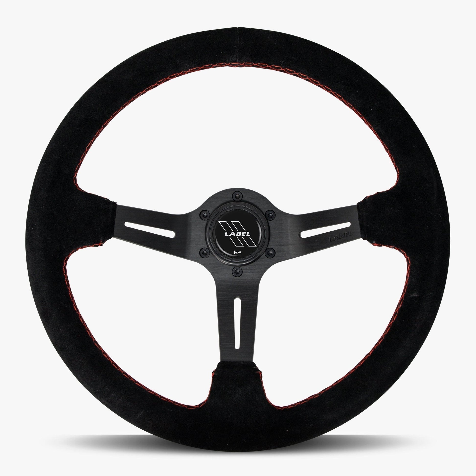 The Le Mans | Black Alcantara Suede | Black Spoke | Red Stitch