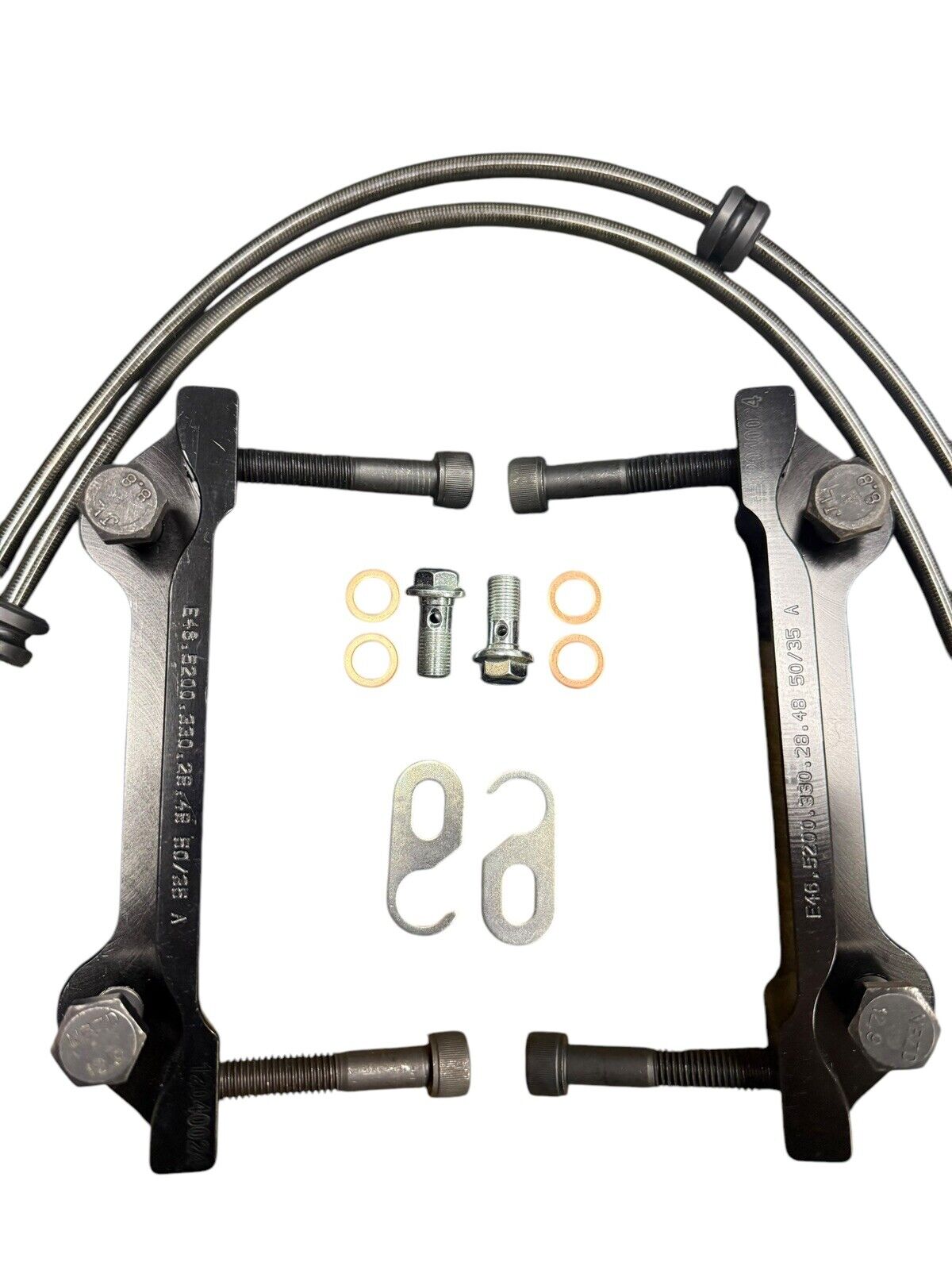 Jackspania Racing's Street Series front big brake upgrade kit is designed as a high performance upgrade for BMW vehicles using 330mm (diameter) front rotors. This brake upgrade kit is one of the most cost effective upgrades for the street and track. With the increased horsepower and torque in today's builds, comes the necessity of a brake kit that can provide consistent braking and stopping performance.
