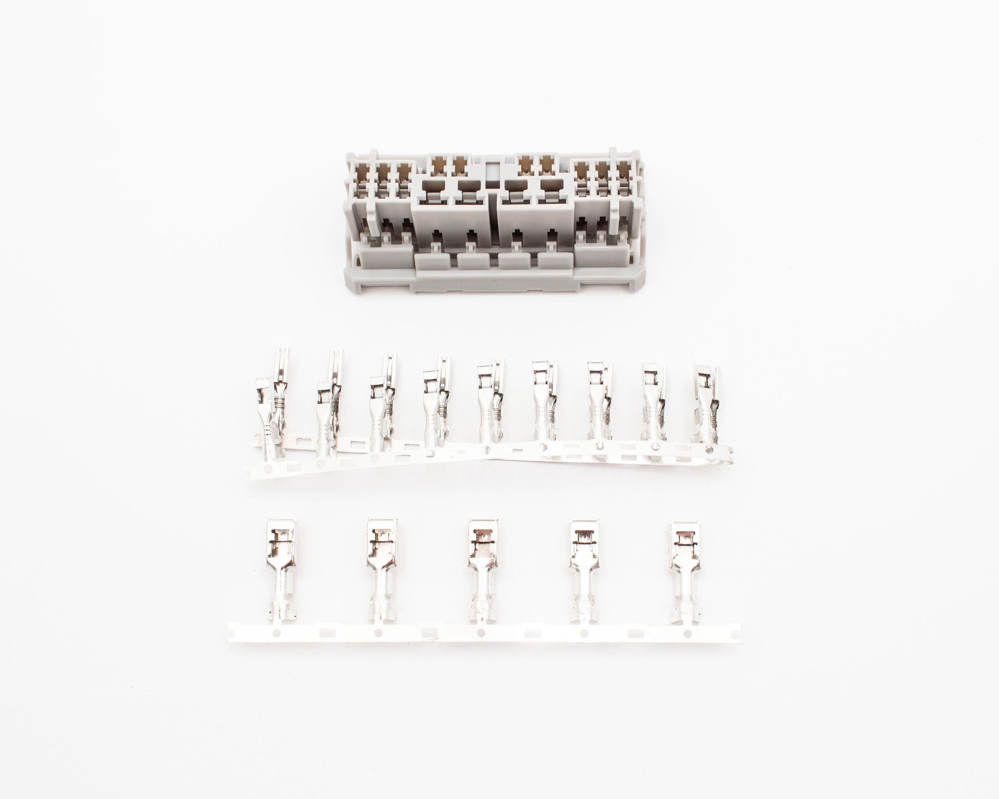This Honda / Acura C101 male connector kit is a commonly used engine harness connector found on the engine harness side of many Honda and Acura applications. It features a male connector housing that uses female terminals, making it ideal for harness repairs, restorations, or custom wiring projects.