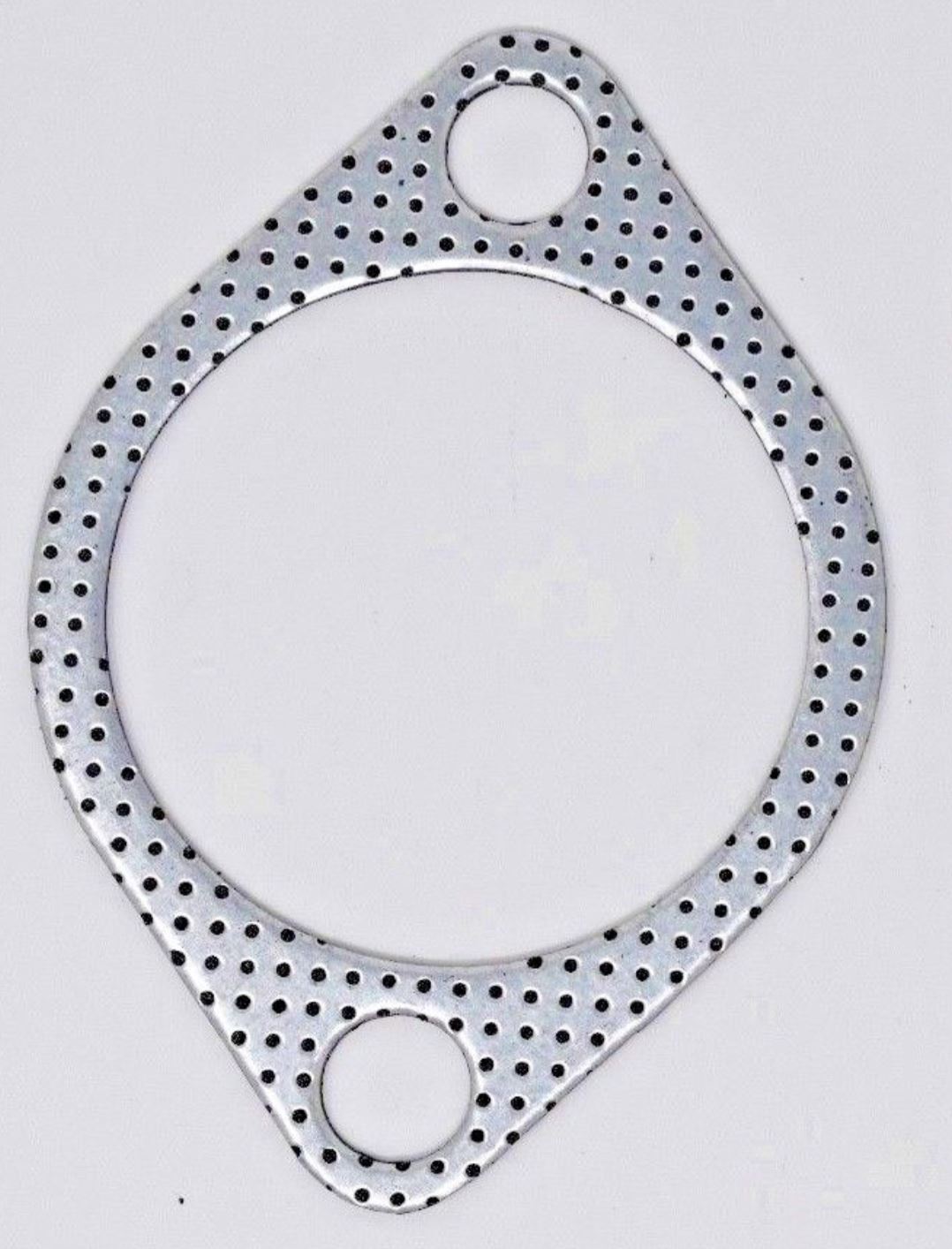 This gasket is manufactured from the sandwiching of two steel plates between which is placed a high temperature mineral fiber card. The completed gasket is mechanically bonded together. This arrangement provides an extremely strong gasket that will adjust to changes in temperatures within the exhaust system.
