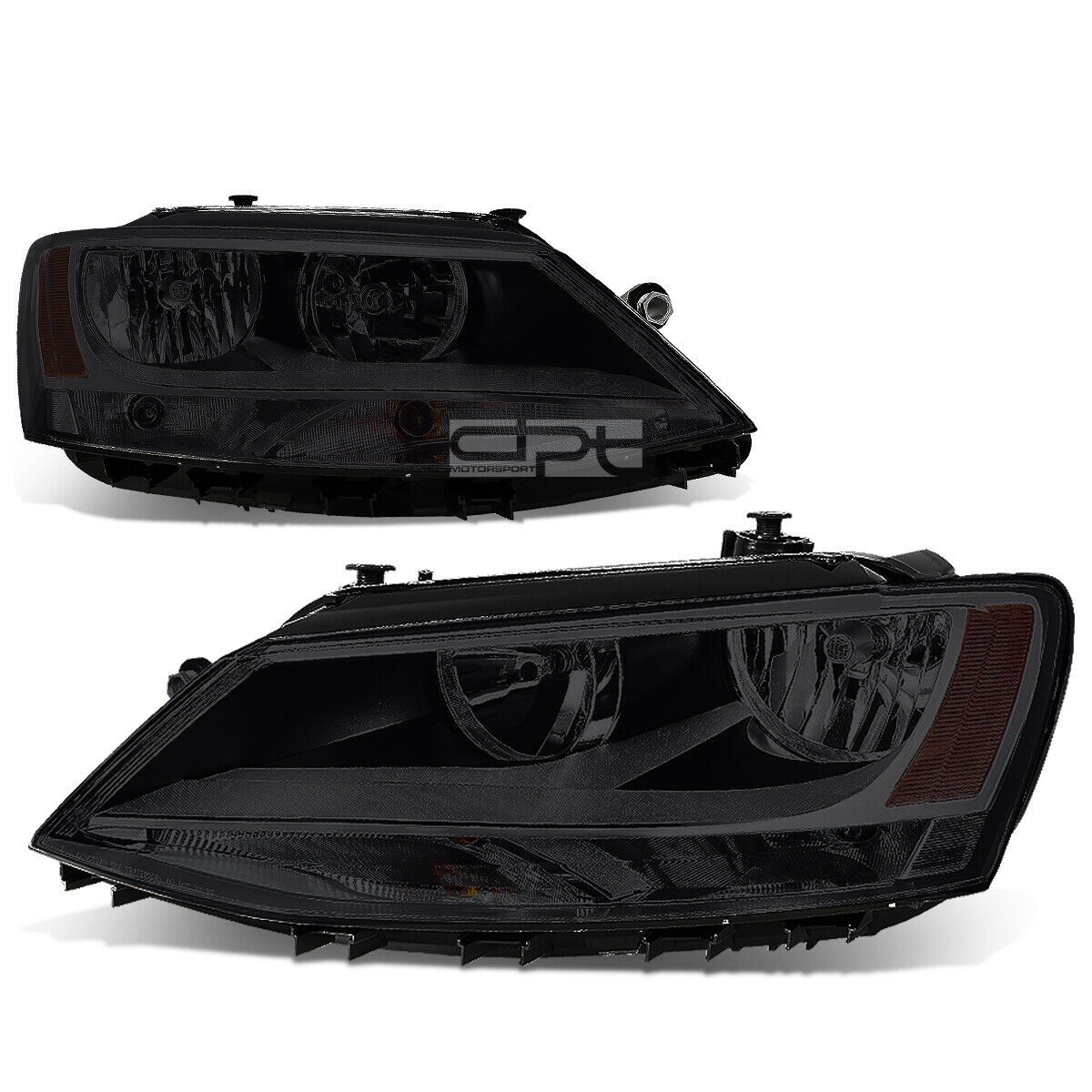 Fit 2011-2018 VW Jetta Mk6 Pair Smoked Housing Amber Corner Headlight/Lamp Set
