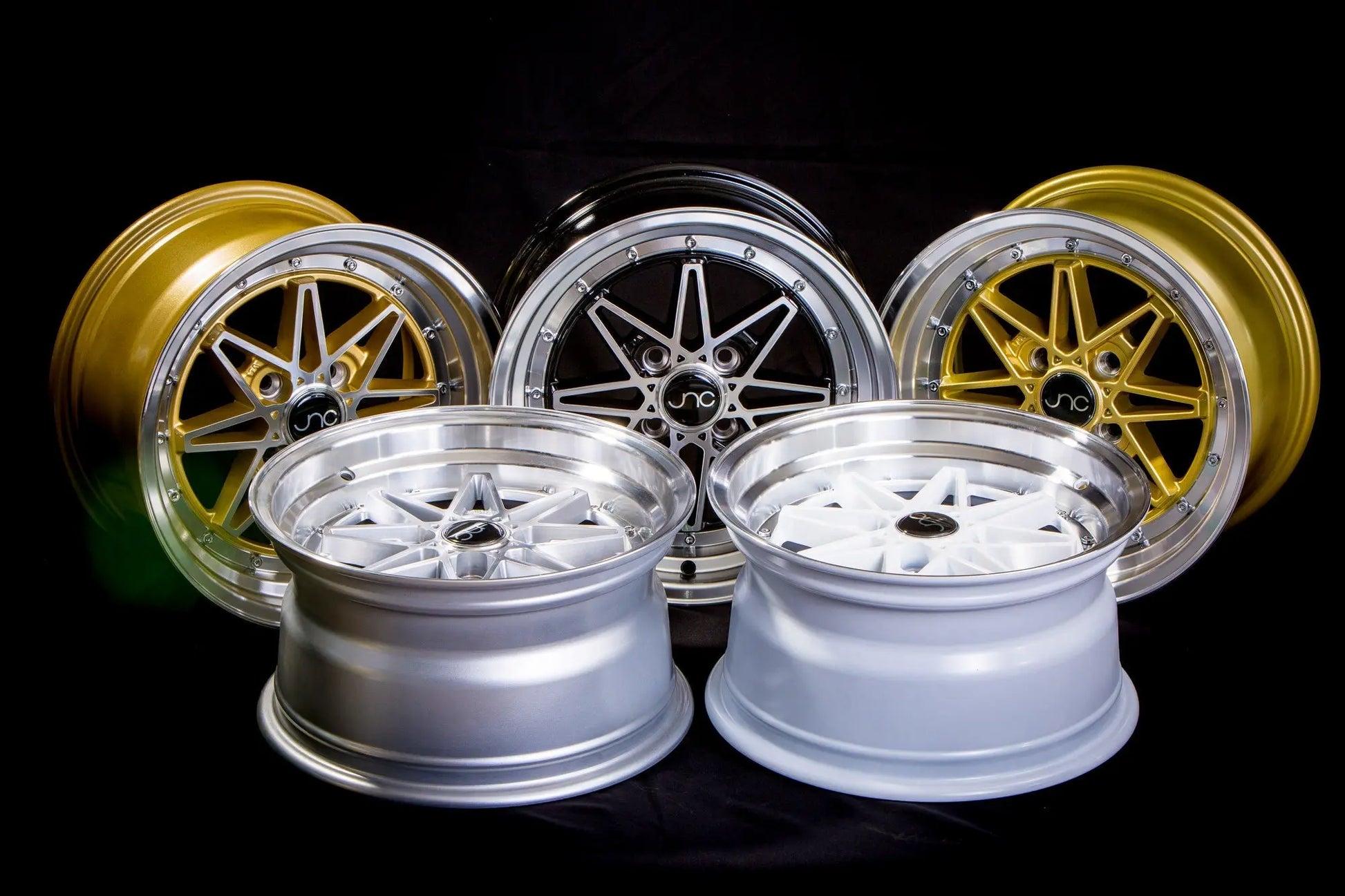 JNC wheels are a low pressure cast wheels. Low pressure casting uses positive pressure to move the molten aluminum into the mold quicker and achieve a finished product that has improved mechanical properties (more dense) over a gravity cast wheel. Low-pressure casting has a slightly higher production cost over gravity casting. Low pressure is the most common process approved for aluminum wheels sold to the O.E.M. market. Low-pressure cast wheels offer a good value for the aftermarket as well.