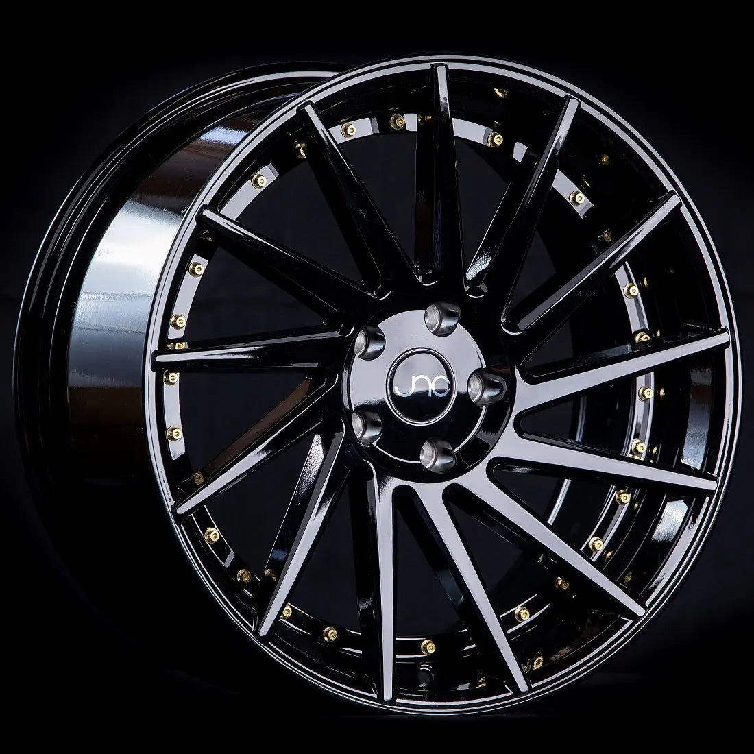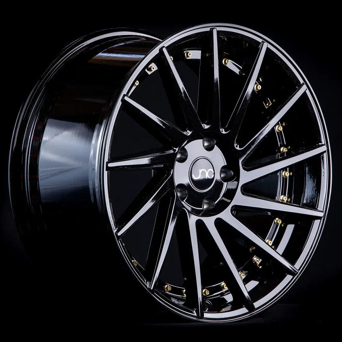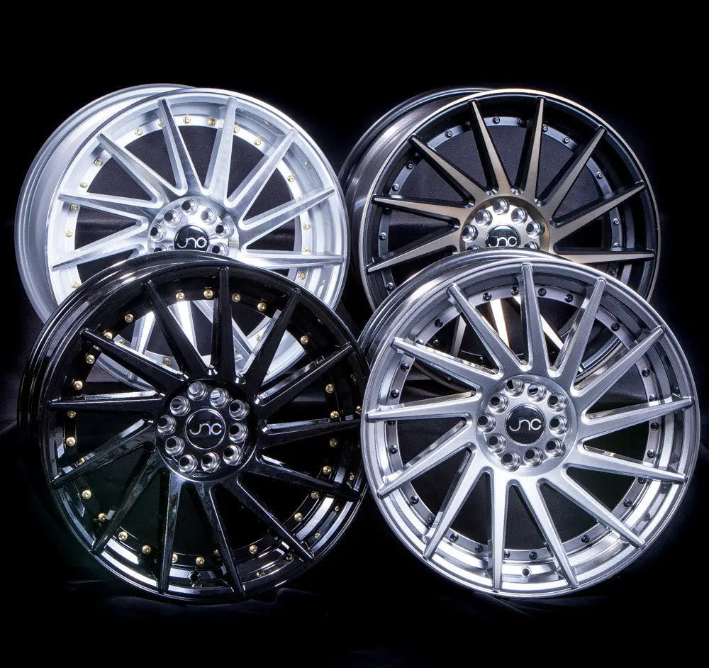 JNC wheels are a low pressure cast wheels. Low pressure casting uses positive pressure to move the molten aluminum into the mold quicker and achieve a finished product that has improved mechanical properties (more dense) over a gravity cast wheel. Low-pressure casting has a slightly higher production cost over gravity casting. Low pressure is the most common process approved for aluminum wheels sold to the O.E.M. market. Low-pressure cast wheels offer a good value for the aftermarket as well.