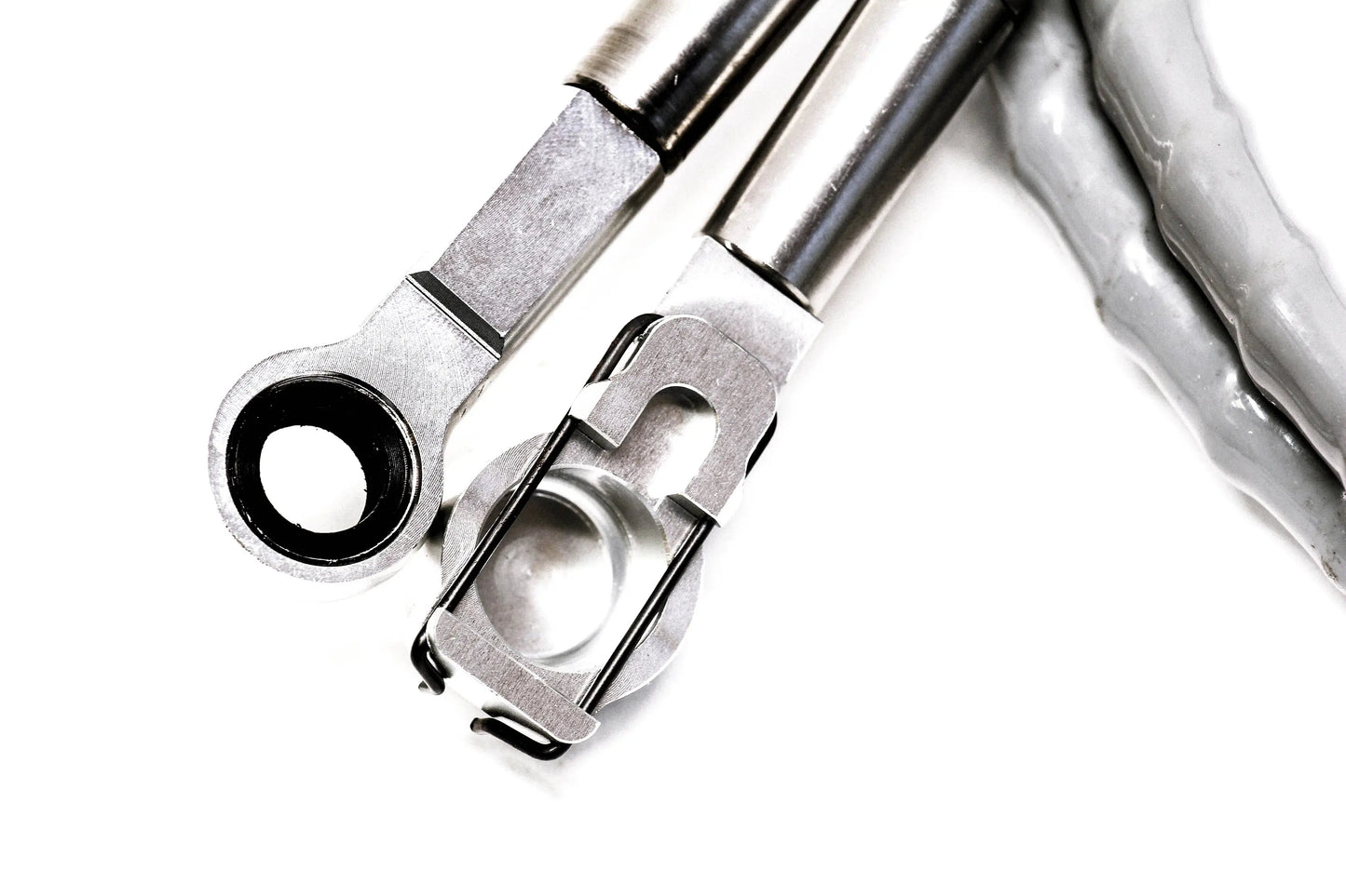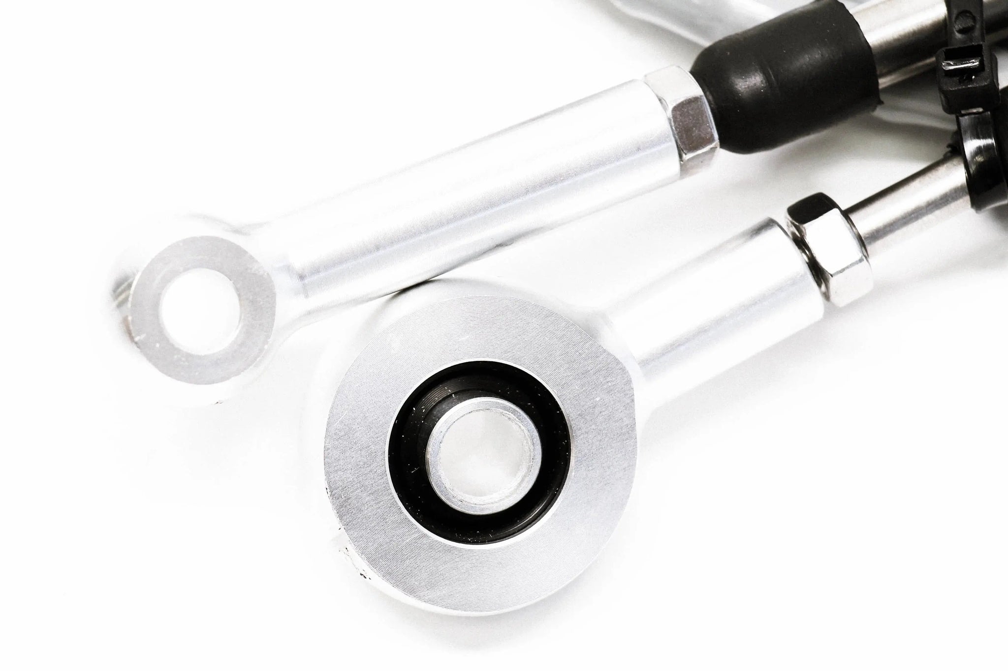 - Gear selector with a billet rod end, with added a spherical Delrin insert to allow proper movement.