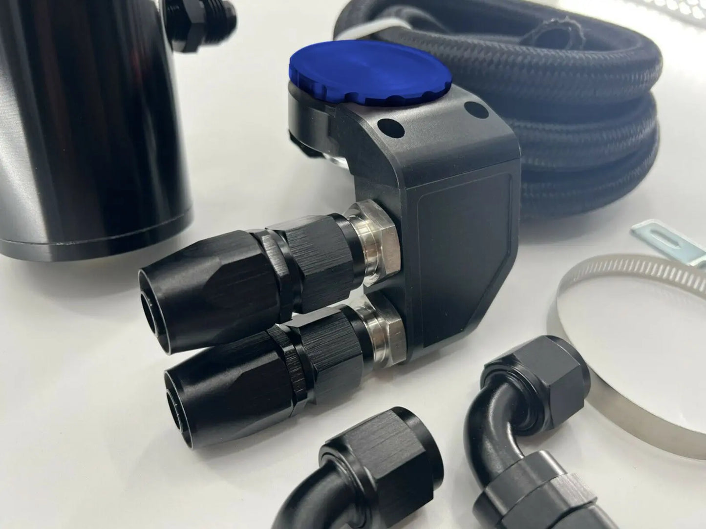 Our oil cap is the fastest and easiest way to add 10AN fittings to your valve cover.