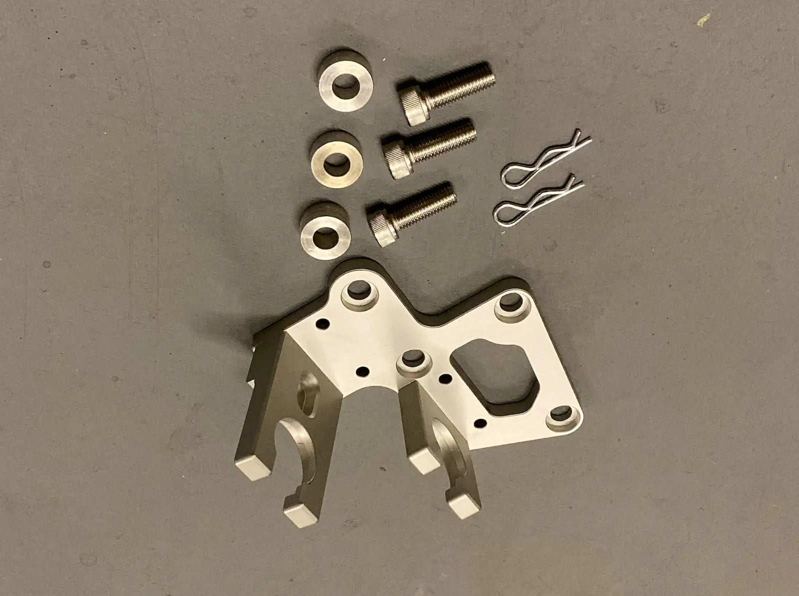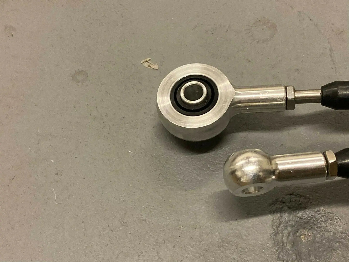 - Gear selector with a billet rod end, with added a spherical Delrin insert to allow proper movement.