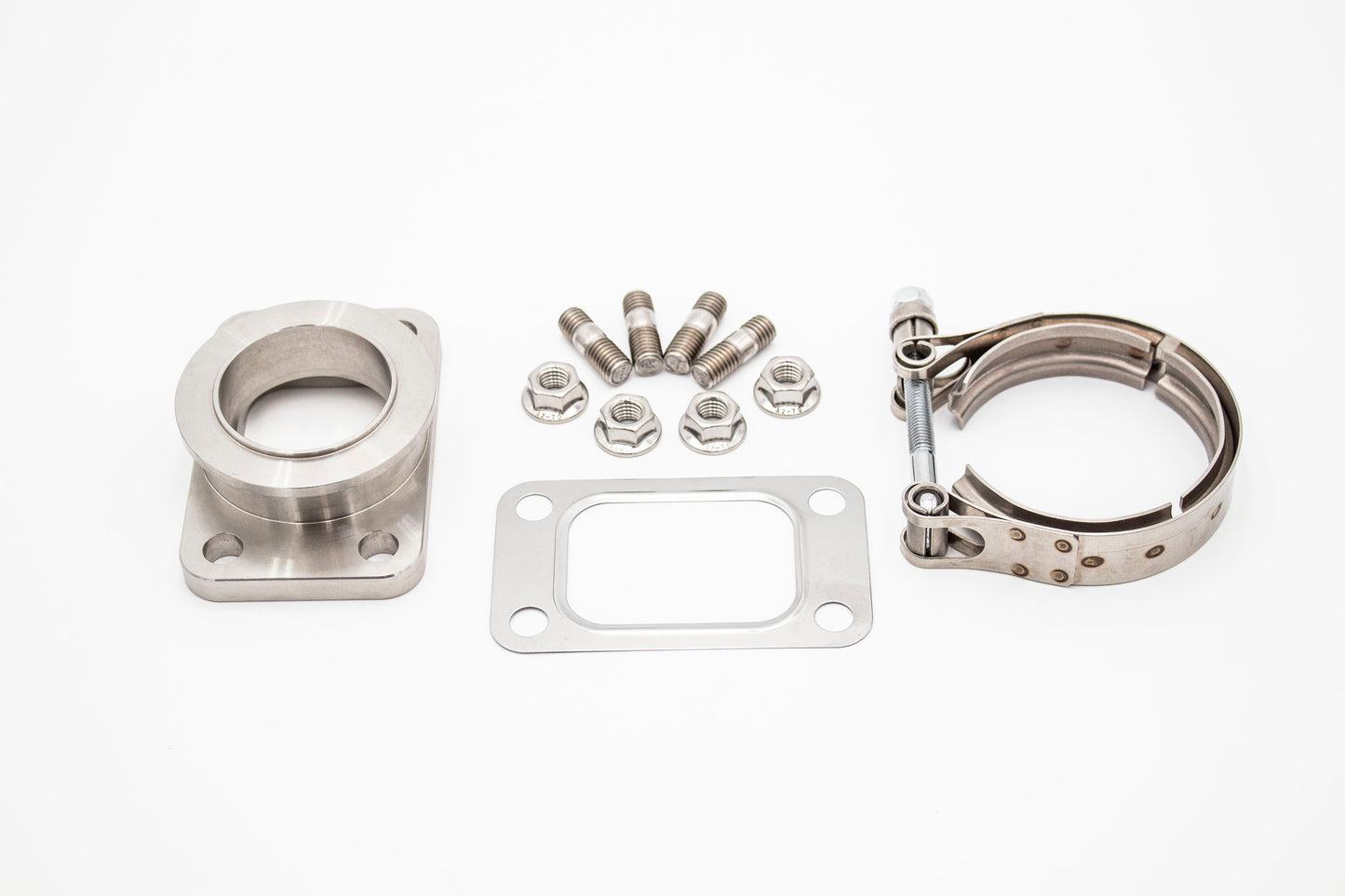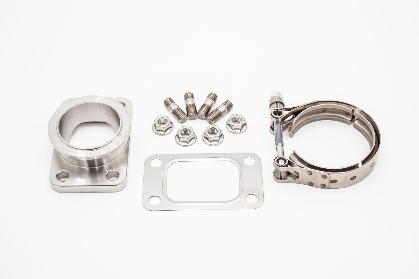 We offer multiple options for a T3 to V-Band adapter. To have your standard T3 manifold converted into the newer style V-Banded turbo. We have adapters that work with turbos starting from Garrett 28R to 35R, Garrett G-Series Turbos, as well as Precision PTE Variants.