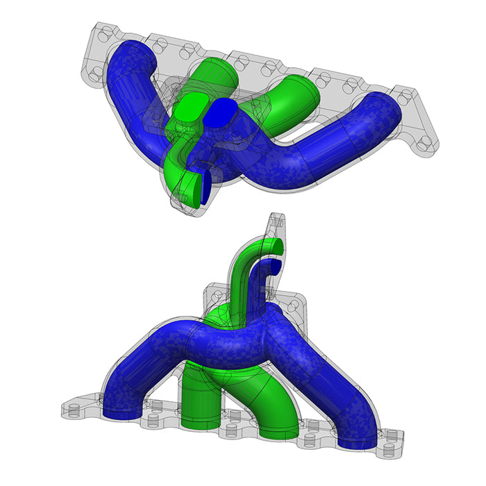 The top-mount turbo manifold has the characteristic of positioning the turbine above the manifold and in addition to the aggressive look, it benefits from less heat radiated to the wastegate and boost pipes. This turbo position also makes the path of the boost pipes easier, allowing smooth curves and larger diameter pipes.